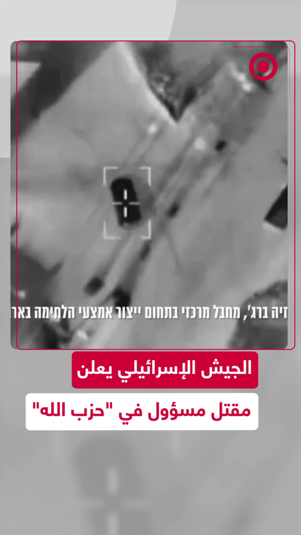 الجيش الإسرائيلي يعلن مقتل مسؤول في "حزب الله" يدعى حسين نزيه برجي بمدينة صور اللبنانية، وجاء في بيان الجيش أن "أنشطة برجي شكلت خرقا للاتفاقات بين لبنان وإسرائيل".