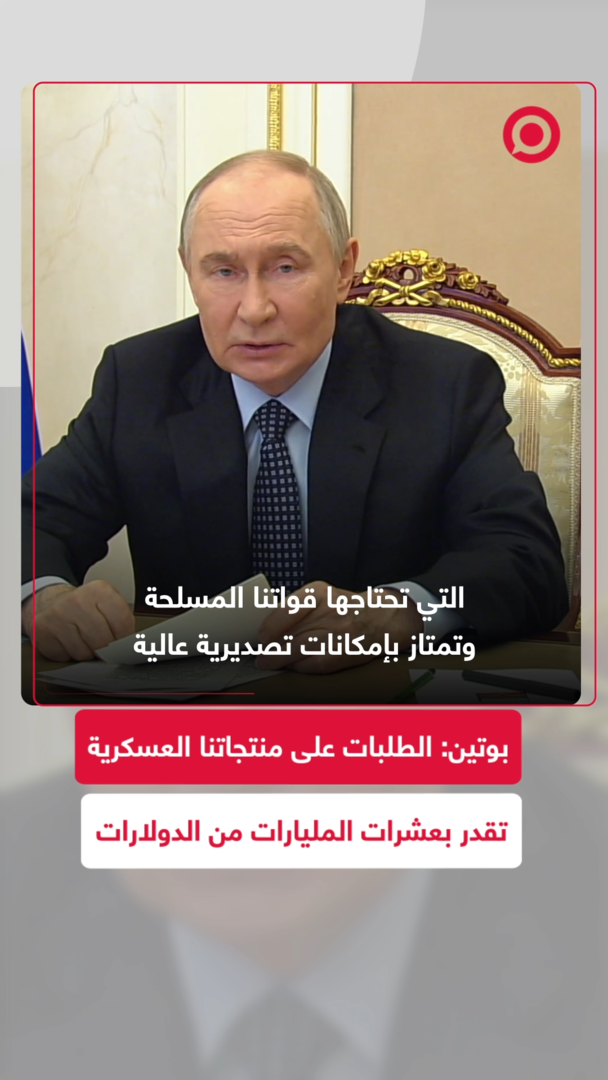 بوتين: الطلبات على المنتجات العسكرية الروسية كبيرة وتقدر بعشرات المليارات من الدولارات