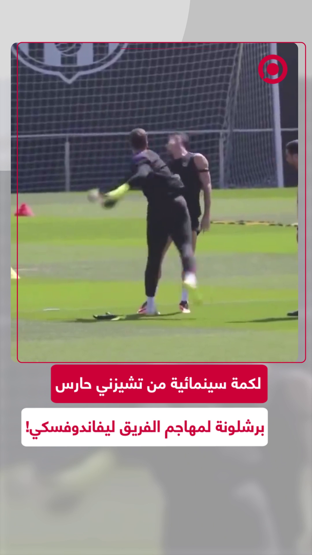 لكمة سينمائية من حارس مرمى برشلونة تشيزني لمهاجم الفريق ليفاندوفسكي بأسلوب فكاهي ليرد الأخير الهجوم 😅