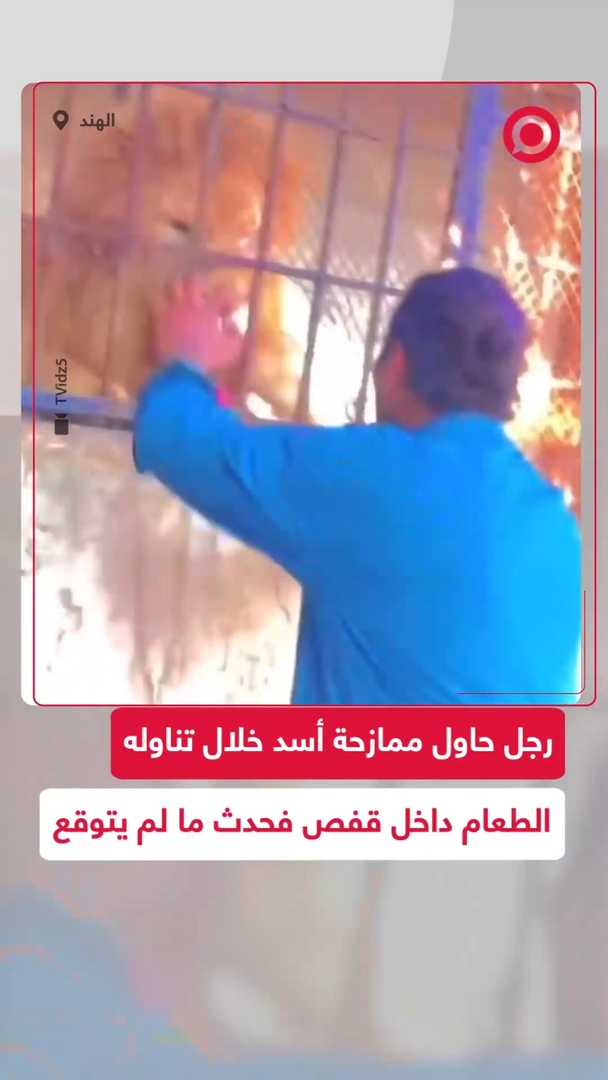 بحث عن الترند فدفع الثمن 🦁.. رجل حاول لمس أنف أسد أثناء تناوله الطعام داخل قفصه لاستفزازه وتصوير المشهد، لكن الأسد هاجمه بمخلبه وأصابه بجرح عميق في يده.