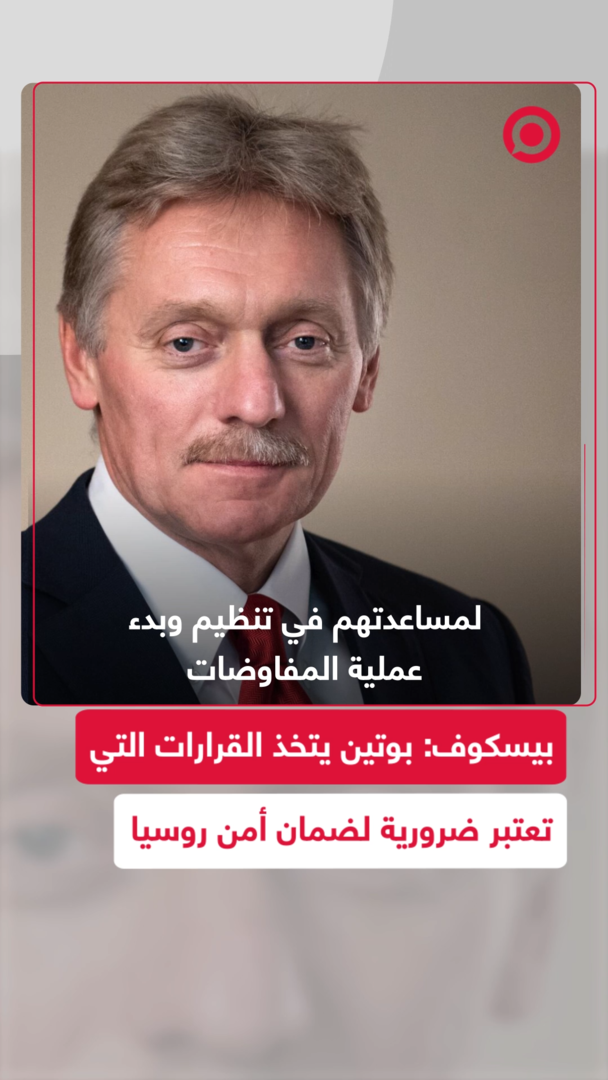المتحدث باسم الكرملين، دميتري بيسكوف، يعرب عن امتنان روسيا للجهود الأمريكية في تنظيم وبدء عملية المفاوضات مع الطرف الأوكراني، مؤكدا أن الرئيس بوتين يتخذ القرارات التي تعتبر ضرورية لضمان أمن روسيا.