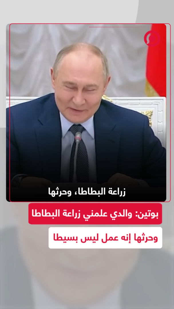 "والدي علمني زراعة البطاطا وحرثها إنه عمل ليس بسيطا".. الرئيس الروسي فلاديمير بوتين، يؤكد على أهمية تطوير القطاع الزراعي مشيرا إلى أنه أصبح قطاعا يتطلب تقنيات عالية جدا.