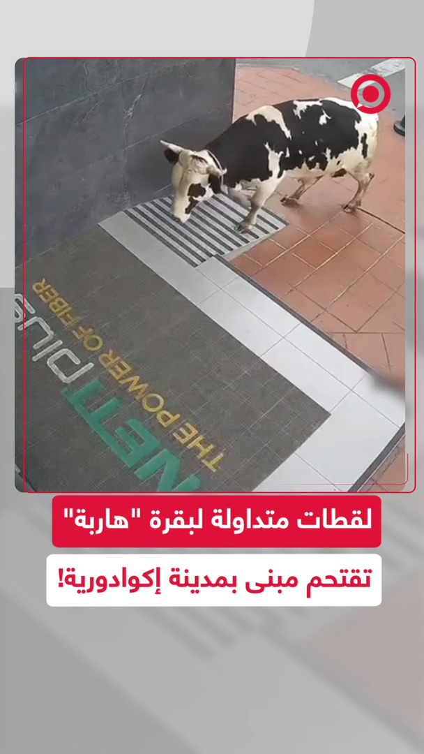مشهد طريف متداول على مواقع التواصل لبقرة "هاربة" وهي تقتحم أحد المباني في مدينة لوخا جنوبي الإكوادور.