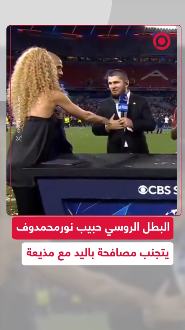 بطل الـ"MMA" الروسي حبيب محمدوف يتجنب مصافحة باليد مع مذيعة
