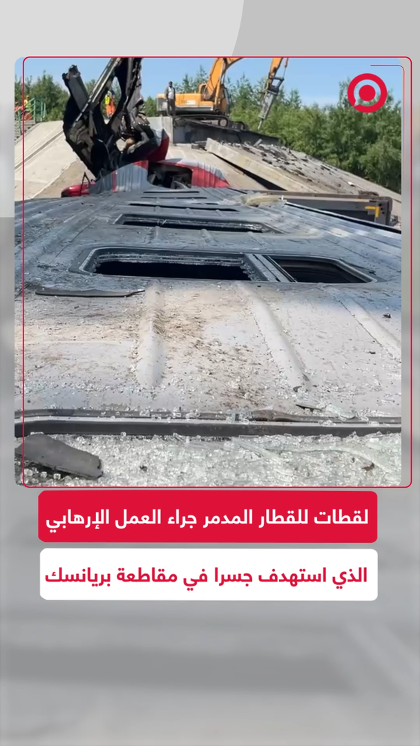 لقطات للقطار المدمر جراء التفجير الإرهابي الذي تعرض له جسر بريانسك