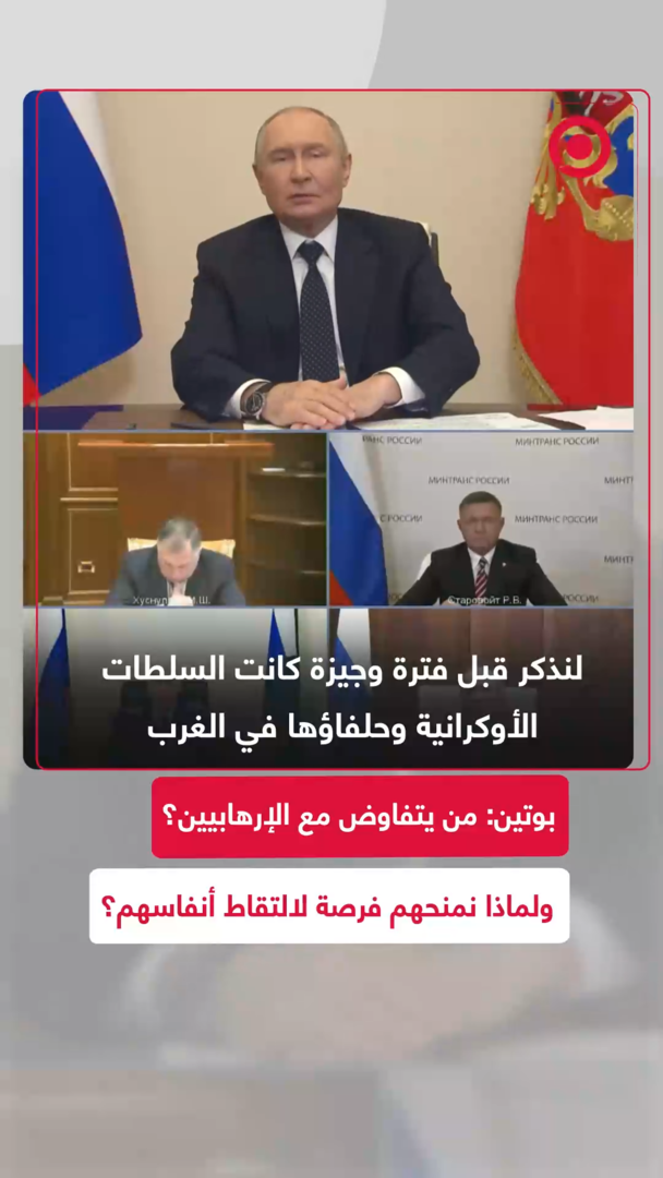 "من سيتفاوض مع الإرهابيين؟!".. الرئيس الروسي فلاديمير بوتين يؤكد أن نظام كييف يستخدم أساليب إرهابية لاستهداف المناطق المدنية الروسية، وفي الوقت ذاته يطالب بهدنة وعقد لقاءات رفيعة المستوى.