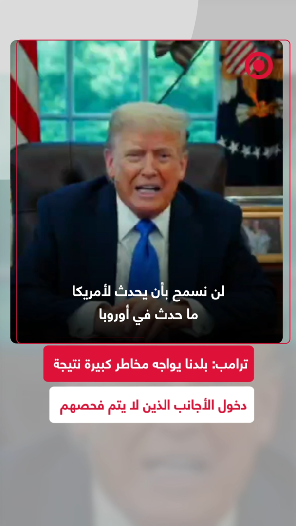 "لن نسمح بأن يحدث لأمريكا ما حدث في أوروبا".. الرئيس الأمريكي دونالد ترامب، ومن خلال رسالة فيديو، يبرر قراره بفرض قيود مشددة على دخول مواطني 12 دولة إلى الولايات المتحدة، مؤكدا أن سياسات إدارة الرئيس السابق جو بايدن لعبت الدور الأكبر بحشد المهاجرين غير الشرعين في البلاد.