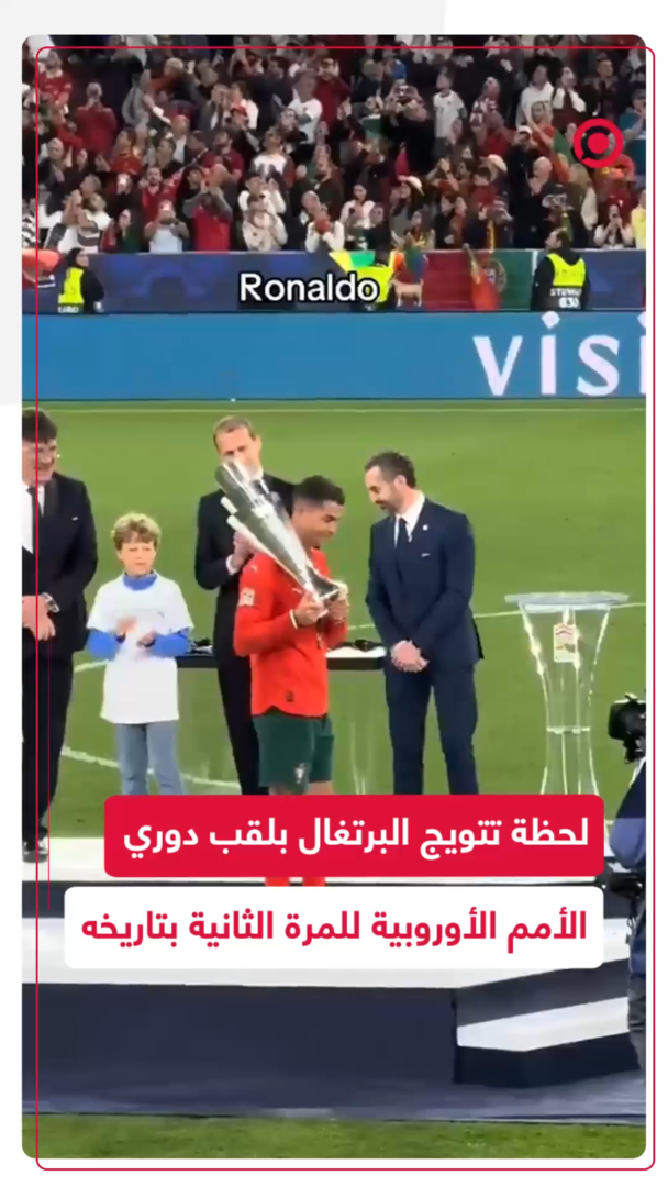 لحظة تتويج منتخب البرتغال بلقب دوري الأمم الأوروبية للمرة الثانية في تاريخه بعد فوزه على نظيره الإسباني بركلات الترجيح بنتيجة 5-4، في المباراة النهائية التي احتضنها ملعب "أليانز أرينا" بمدينة ميونخ الألمانية.