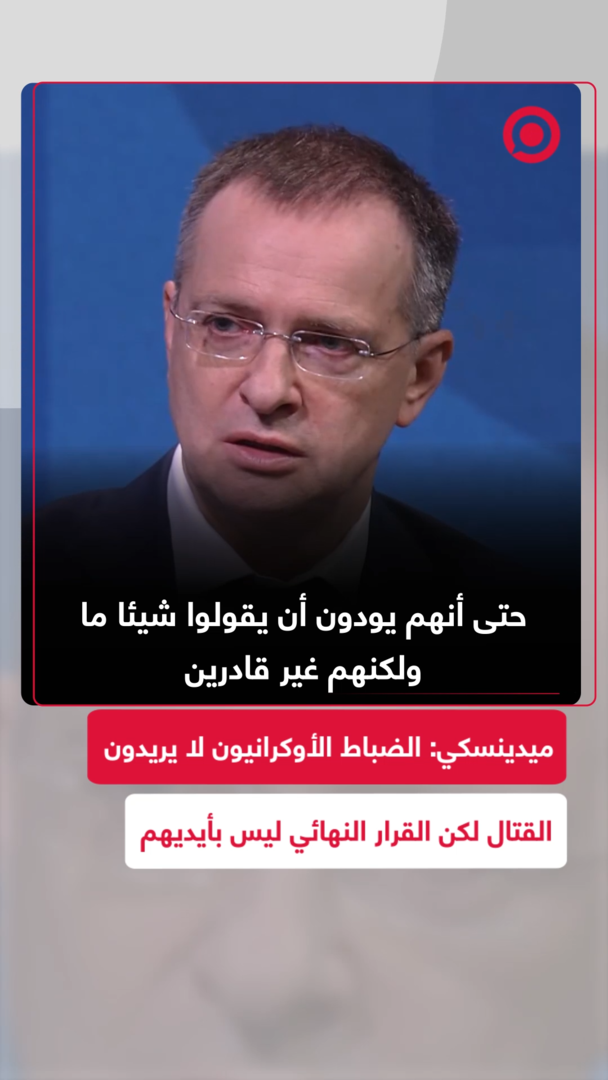 "أشعر أنهم في داخلهم أفضل مما يظهروه علنا".. رئيس الوفد الروسي في مفاوضات إسطنبول فلاديمير ميدينسكي، يؤكد أن معظم الضباط الأوكرانيين لا يرغبون في مواصلة القتال لكن القرار النهائي ليس في أياديهم.