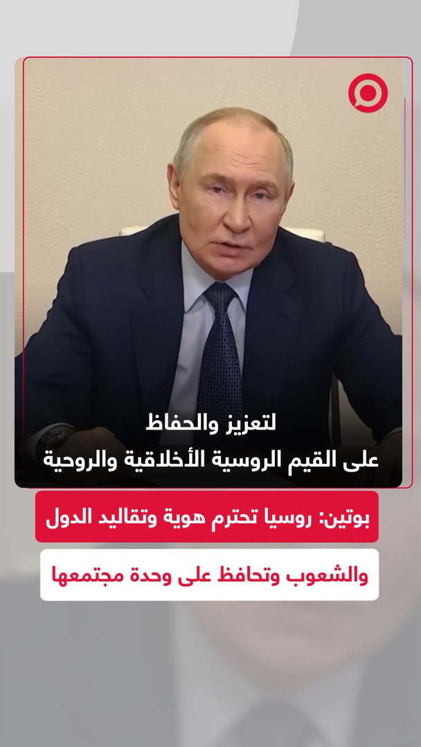 الرئيس الروسي فلاديمير بوتين يؤكد أن روسيا تحترم هوية الدول والشعوب وعاداتهم وتقاليدهم ويشدد على ضرورة الحفاظ على القيم الروسية الأخلاقية والروحية.