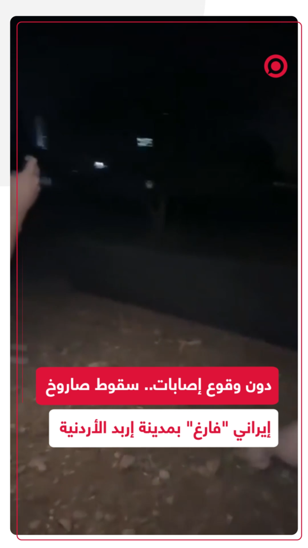 صاروخ يُعتقد أنه من الرد الإيراني الأول على إسرائيل، سقط في منطقة مفتوحة بمدينة إربد شمال الأردن، دون أن يتسبب في أضرار بشرية أو مادية.