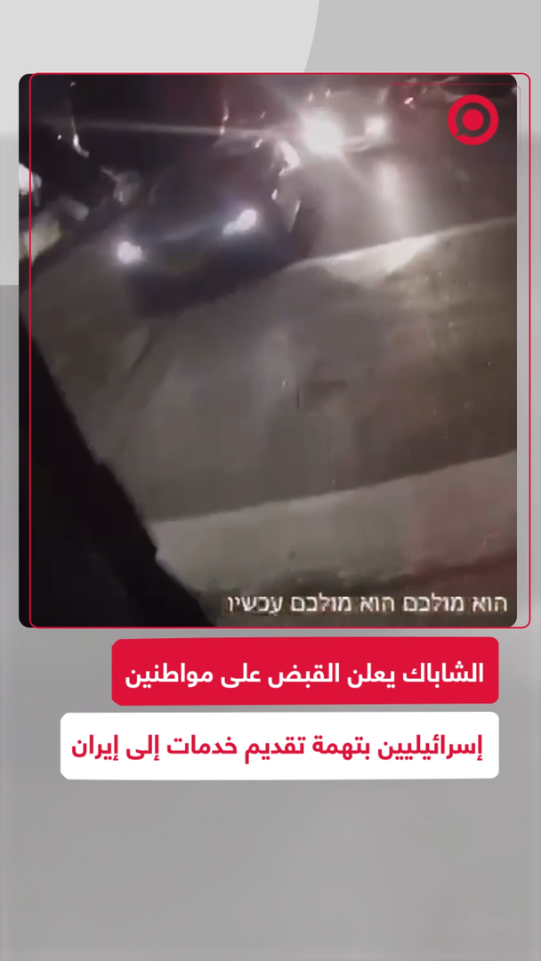 الشاباك الإسرائيلي ينشر مقطع فيديو يوثق إعتقال مواطنين إسرائيليين متهمين بتقديم خدمات لإيران في ظل التصعيد بين البلدين.