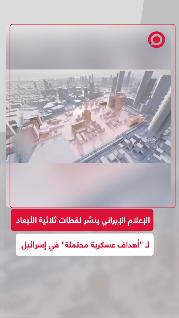 وسائل إعلام إيرانية تنشر لقطات ثلاثية الأبعاد لمراكز عسكرية واستخباراتية حساسة بتل أبيب وتقول إنها ستصبح "أهدافا عسكرية محتملة" خلال الأيام المقبلة.