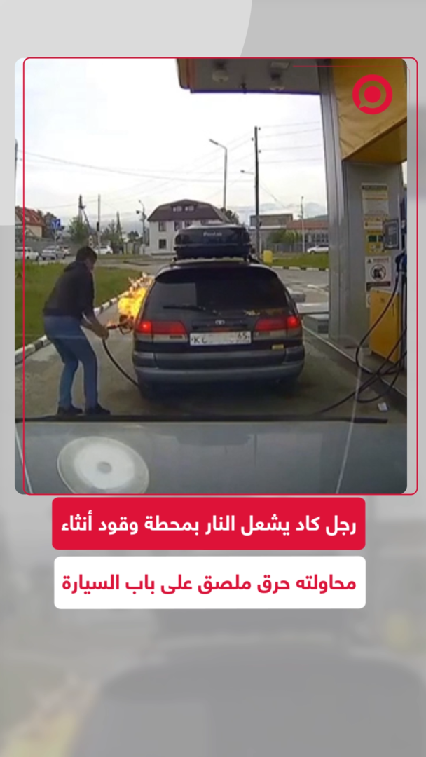 رجل كاد يشعل النار بمحطة وقود بأكملها أنثاء محاولته لحرق ملصق على باب السيارة