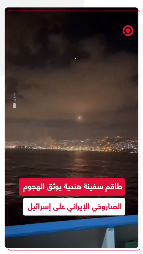 مقطع متداول وثقه طاقم سفينة هندية للرشقات الصاروخية الإيرانية على إسرائيل.