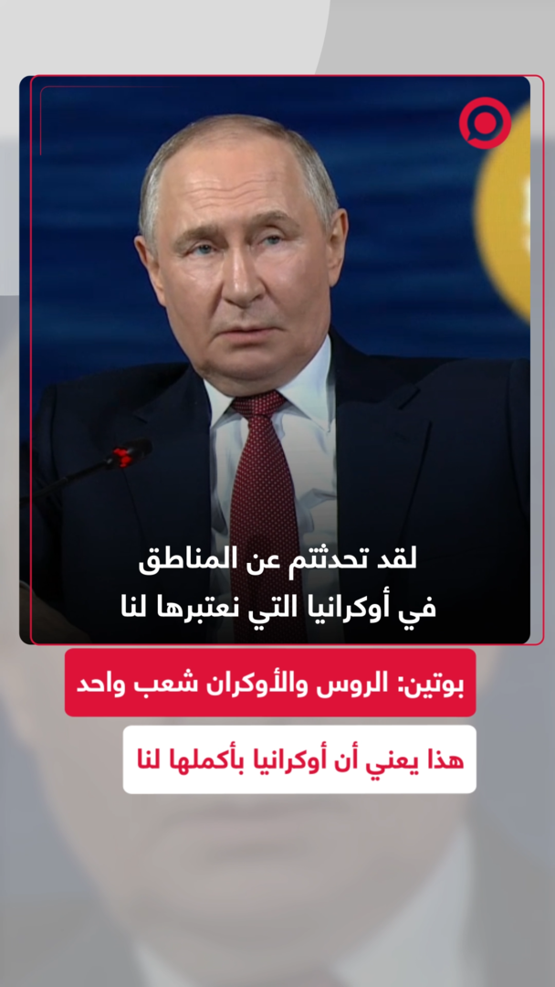 "هذا يعني أن أوكرانيا بأكملها لنا".. الرئيس الروسي فلاديمير بوتين، يرد على سؤال حول تقدم الجيش الروسي في العمق الأوكراني، مؤكدا أن الروس والأوكران شعب واحد.