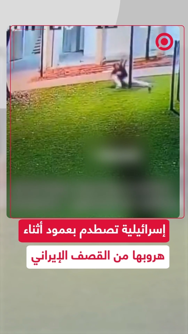 لحظة اصطدام امرأة إسرائيلية بعمود كهرباء أثناء هروبها من صواريخ إيران
