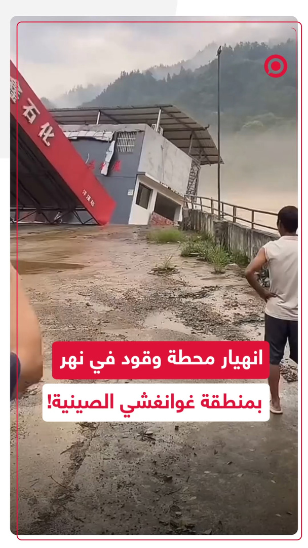 مشهد نادر وثقه السكان.. انهيار محطة وقود وسقوطها في نهر بمنطة غوانغشي جنوب الصين.
