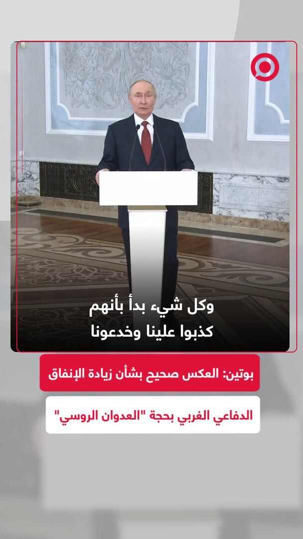الرئيس الروسي فلاديمير بوتين يؤكد أن الغرب يتذرع بـ"العدوانية الروسية" لزيادة الإنفاق العسكري وأن ما يحدث في الوقع عكس ذلك تماما