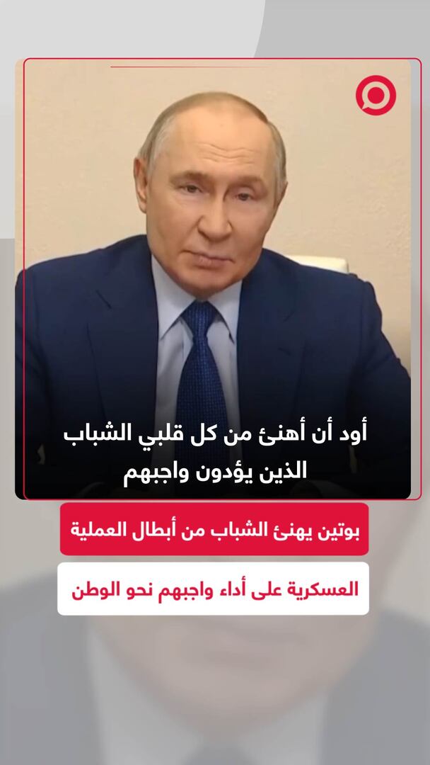 بوتين يهنئ الشباب في منطقة العملية العسكرية الخاصة