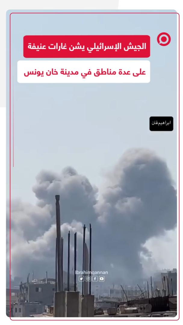 إسرائيل تنفذ غارات جوية على عدة مناطق في مدينة خان يونس جنوبي قطاع غزة