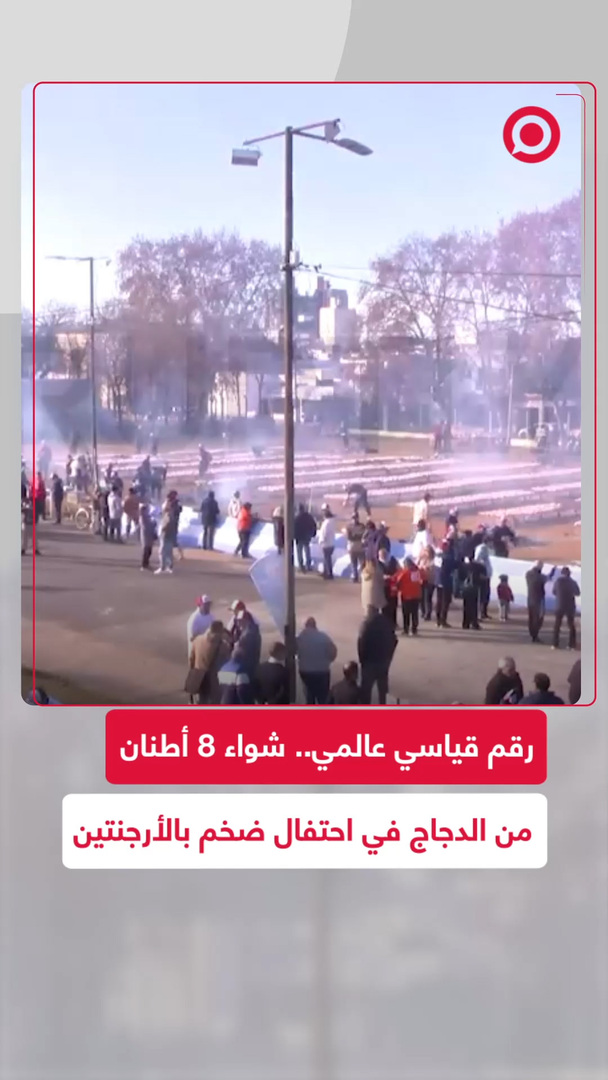 محققين رقما قياسيا عالميا.. شواء 8 أطنان من لحم الدجاج في الأرجنتين احتفالا بالذكرى الـ242 لتأسيس المدينة والذكرى السنوية لمصنع FEPASA، وتم توزيع الطعام بالكامل على المؤسسات الخيرية.