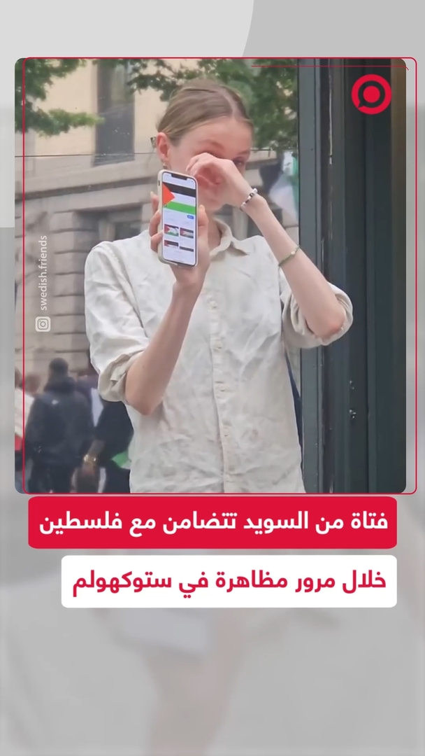 فتاة سويدية تعبر عن تضامنها مع فلسطين بصورة للعلم على هاتفها