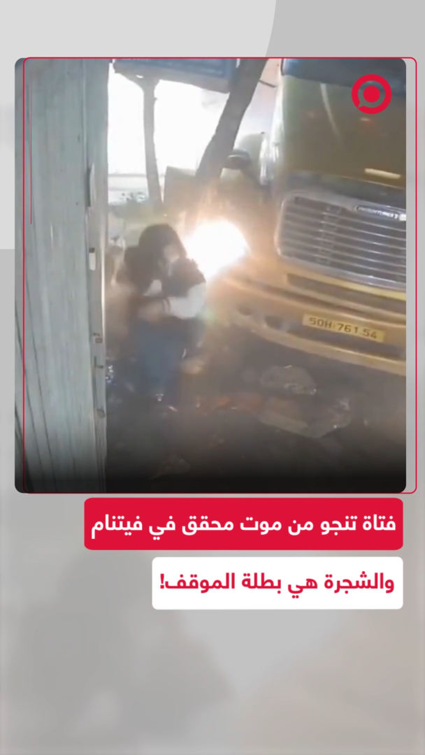 فتاة تنجو من بأعجوبة من الدهس بشاحنة بعد أن أوقفتها شجرة