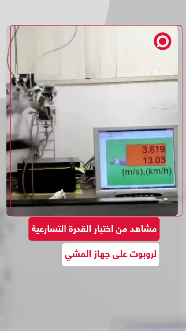 فيديو يوضح القدرة التسارعية للروبوت من خلال اختباره على جهاز المشي، حيث تصل سرعته حوالي 50 كم بالساعة.