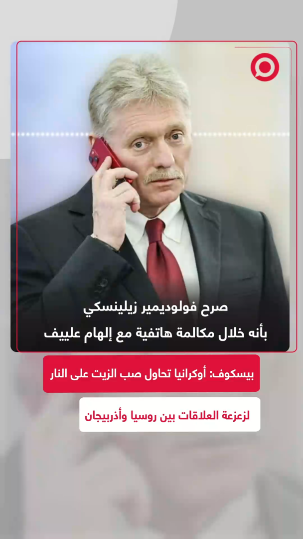 المتحدث باسم الكرملين، دميتري بيسكوف، يؤكد أن كييف تحاول صب الزيت على النار لزعزعة العلاقات بين روسيا وأذربيجان.