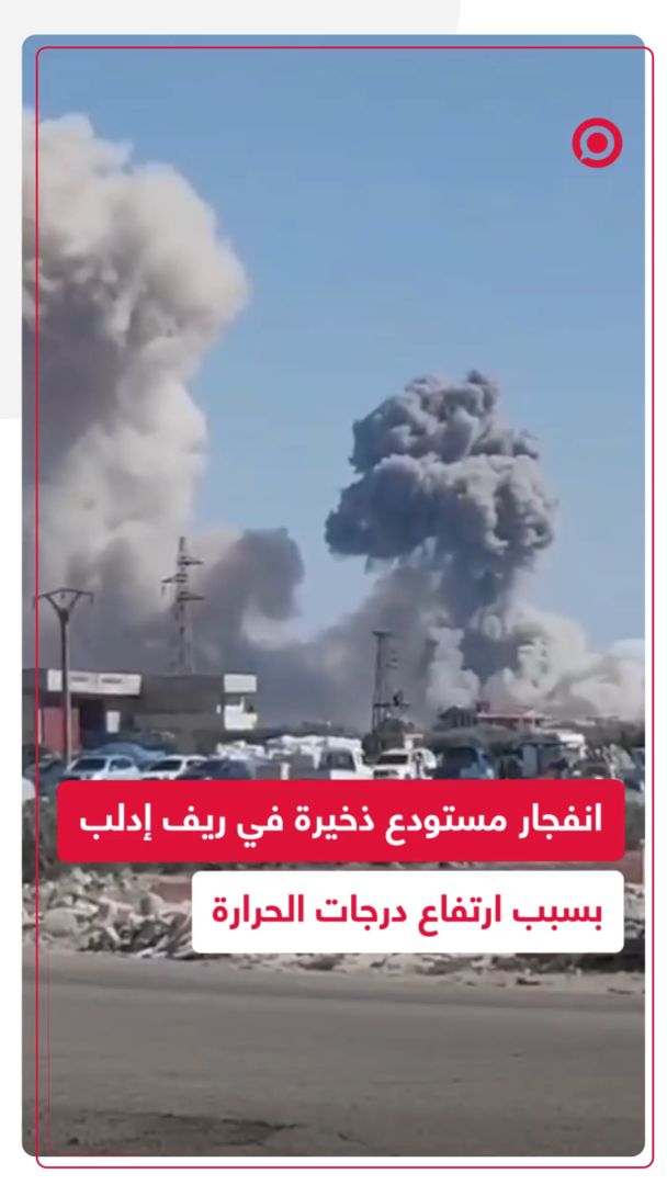 انفجارات قوية في ريف إدلب ناجمة عن انفجار مستودع ذخيرة بسبب ارتفاع درجات الحرارة حسبما أفادت المصادر.