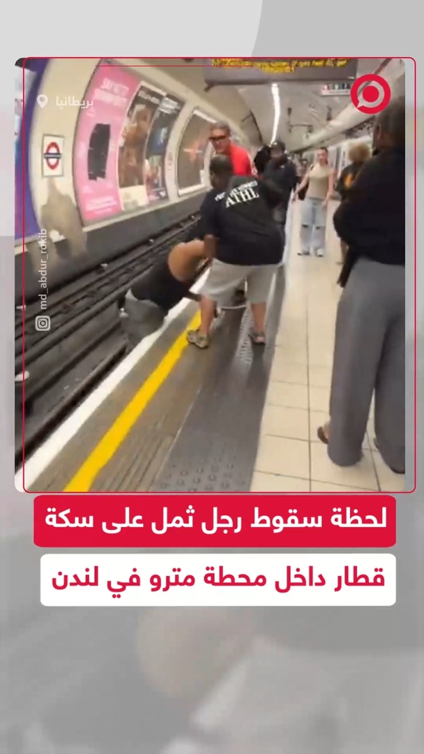 هرعوا لإنقاذه قبل وصول القطار 🚆😱.. لحظة سقوط رجل ثمل على سكة قطار داخل محطة مترو "شيبردز" في العاصمة البريطانية لندن.