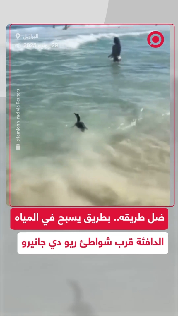 زائر قطبي في أجواء استوائية 🐧🌊.. تفاجأ رواد أحد شواطئ مدينة ريو دي جانيرو بطائر بطريق يسبح بين أمواج المياه الدافئة، بعدما ضل طريقه من موطنه البارد في لحظة نادرة ومبهجة.