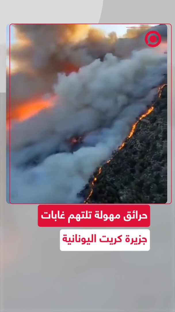لقطات لاجتياح حرائق ضخمة جزيرة كريت اليونانية، مع أخذ السلطات المعنية قرارات بإخلاء المنازل والفنادق لتجنب وقوع أضرار بشرية.