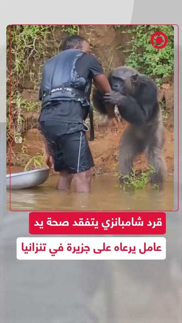 لحظة نادرة.. قرد شامبانزي يتفقد صحة يد عامل يرعاه أثناء وضع الطعام له في إحدى المحميات داخل جزيرة بونغو التابعة لدولة تنزانيا.