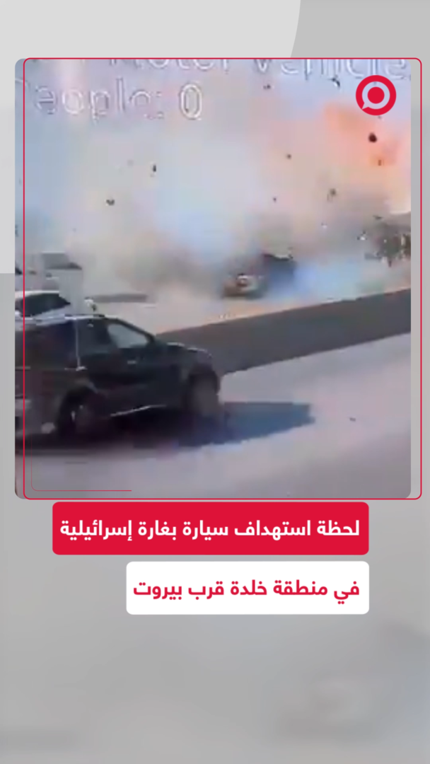 لحظة استهداف سيارة بغارة إسرائيلية في منطقة خلدة قرب بيروت