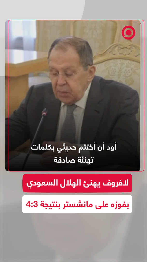 وزير الخارجية الروسي سيرغي لافروف وفي مداخلة لطيفة خلال محادثاته مع نظيره السعودي يهنئ فريق الهلال السعودي بالفوز على فريق مانشستر سيتي في بطولة كأس العالم للأندية.