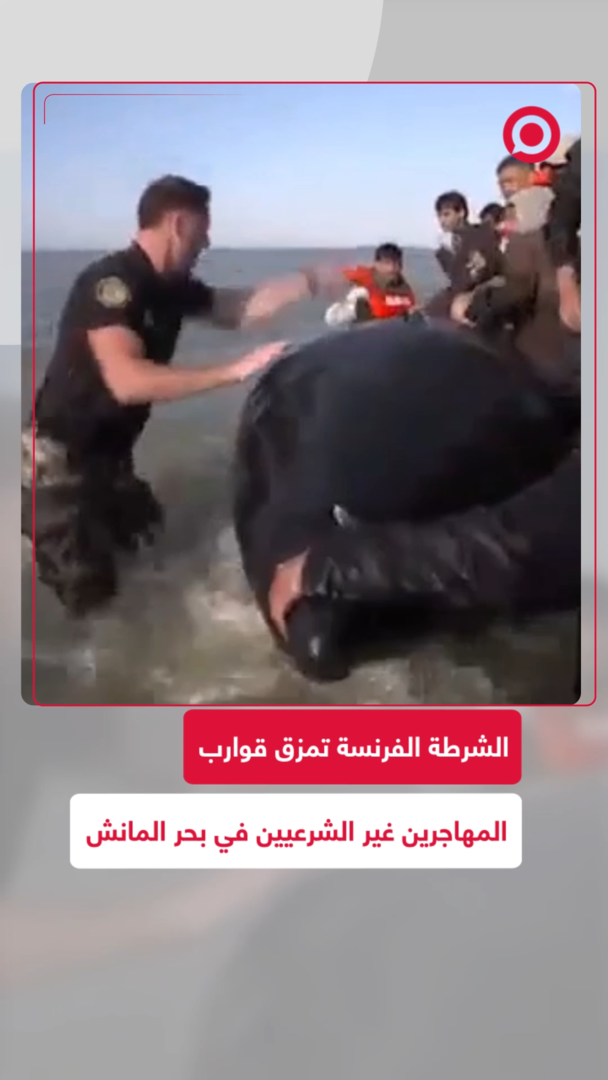 تصرف غير إنساني.. لقطات متداولة تظهر قيام الشرطة الفرنسية بإحداث شقوق في قوارب مطاطية تحمل مهاجرين يحاولون عبور بحر المانش (القناة الإنجليزية) للوصول إلى بريطانيا.