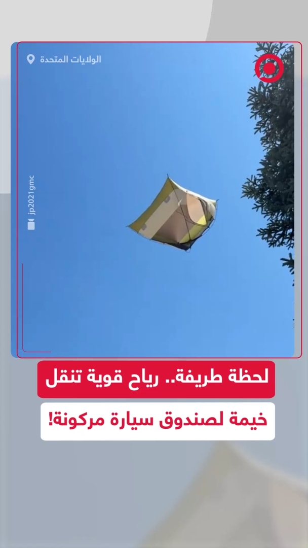 رياح قوية اجتاحت فناء منزل بولاية أوريغون الأمريكية، لتحمل خيمة وتضعها بدقة عجيبة داخل صندوق سيارة مركونة.