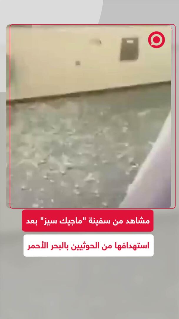 مشاهد متداولة من داخل سفينة "ماجيك سيز" بعد استهدافها من قبل "الحوثيين" في البحر الأحمر، حيث أعلنت حركة "أنصـ،ـار الله" سابقا غرق السفين "ردا على انتهاكات الشركة المالكة لها المتكررة لقرار حظر الدخول إلى موانئ فلسطين".