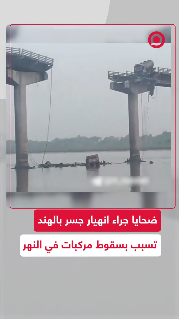 أدى إلى وفاة ثلاثة أشخاص.. انهيار جسر مروري في الهند مما أسفر عن سقوط شاحنة وصهريج وعدة سيارات في مياه النهر.