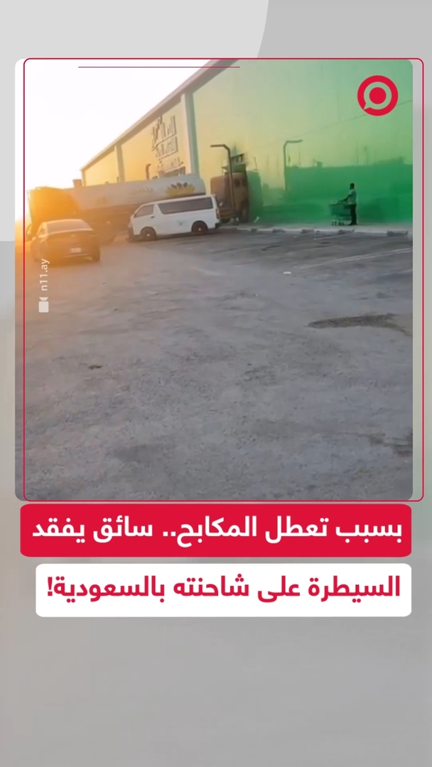 سائق شاحنة يفقد السيطرة على مركبته نتيجة تعطل المكابح، ما أدى إلى تجاوز الرصيف الأوسط واصطدامه بمبنى قرب "الصالة الاقتصادية" في العاصمة السعودية الرياض.