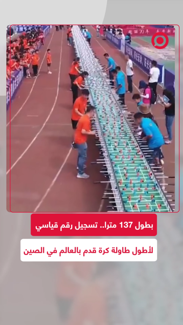 تم تسجيل رقم قياسي جديد لأطول طاولة كرة قدم في العالم بمدينة جيوجيانغ الصينية، بلغ طولها 137 مترا حيث تتسع لما يصل إلى 500 شخص في آن واحد.