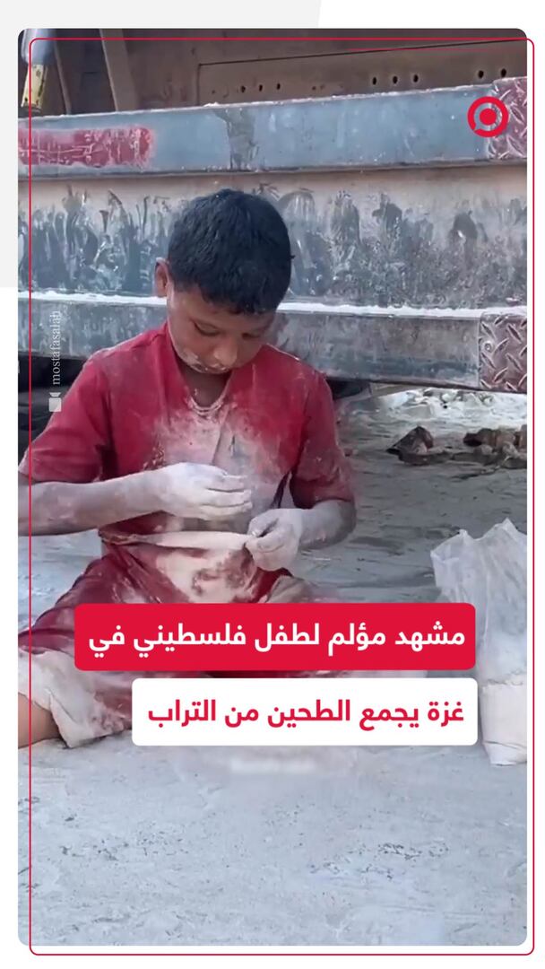 في ظل الحصار والدمار وحرب التجويع.. طفل فلسطيني في غزة يجمع بقايا الطحين من التراب أملا في توفير لقمة تسد رمقه