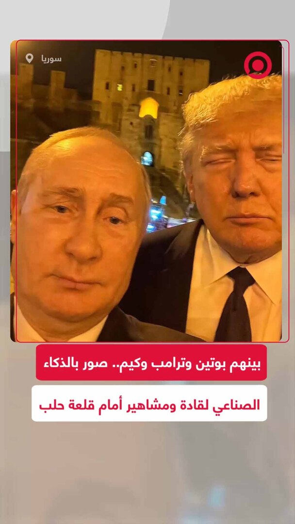 بوتين وترامب وكيم جونغ أون في سوريا.. مشاهد مولدة بتقنية الذكاء الصناعي تظهر قادة وروساء ومشاهير كرة قدم هم يلتقطون صورا "سلفي" وخلفهم قلعة حلب في سوريا.