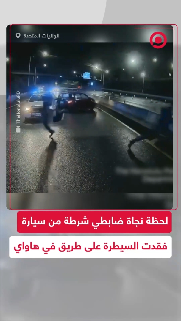 لحظة مرعبة التقطتها كاميرا المراقبة 🚓.. نجاة ضابطي شرطة بأعجوبة جراء فقدان سيارة السيطرة على أحد الطرقات السريعة وانحرفت باتجاههما بسرعة كبيرة في مدينة هونولولو بولاية هاواي الأمريكية، قبل أن تصطدم بجدار قربهما.