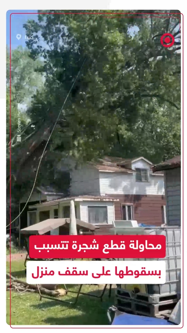 محاولة فاشلة لقطع شجرة تنتهي بسقوطها على منزل سكني في كندا