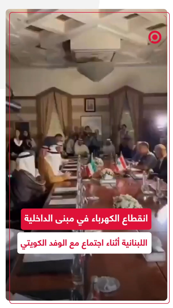 انقطاع التيار الكهربائي في مبنى وزارة الداخلية اللبنانية خلال اجتماع رسمي مع وفد من دولة الكويت.