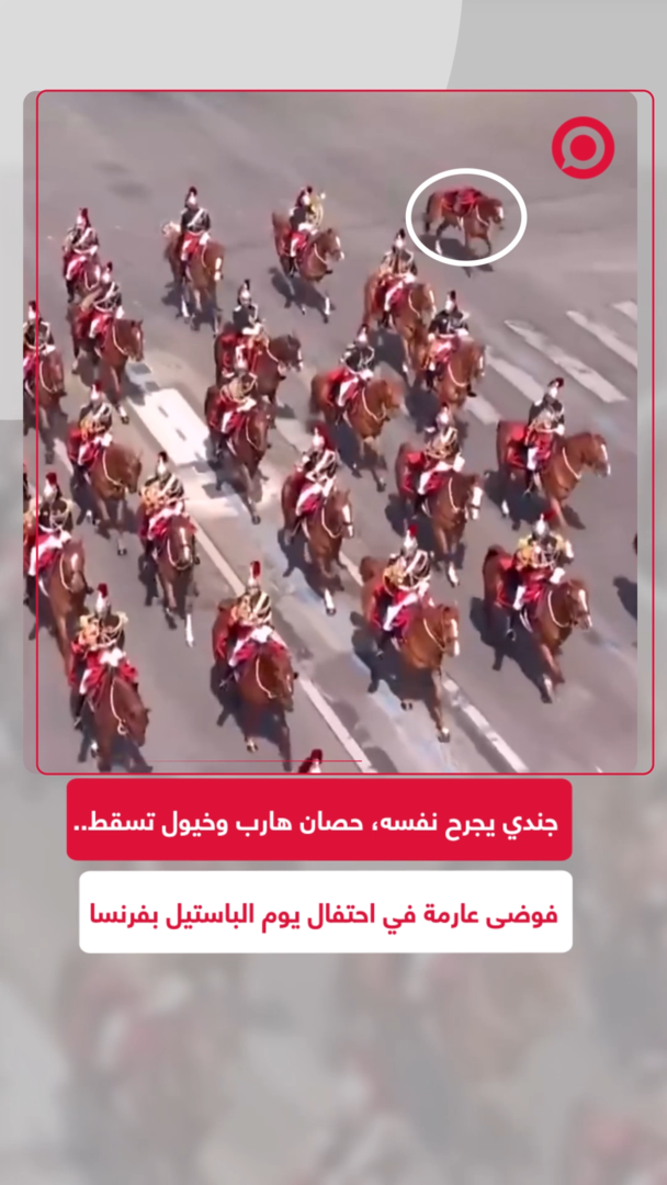 العاصمة الفرنسية شهدت فوضى عارمة خلال احتفالات يوم الباستيل، ذكرى ثورة 1789. حيث جرح جندي نفسه أثناء العرض العسكري ، بينما هرب حصان من بين الحشود، ما تسبب في سقوط عدد من الخيول.