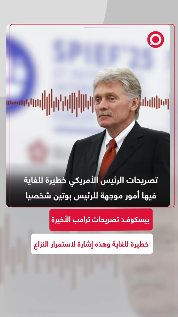 المتحدث باسم الكرملين، دميتري بيسكوف، يؤكد أن تصريحات دونالد ترامب خطيرة للغاية وتحتاج إلى تحليل دقيق قبل اتخاذ موقف رسمي بشأنها.